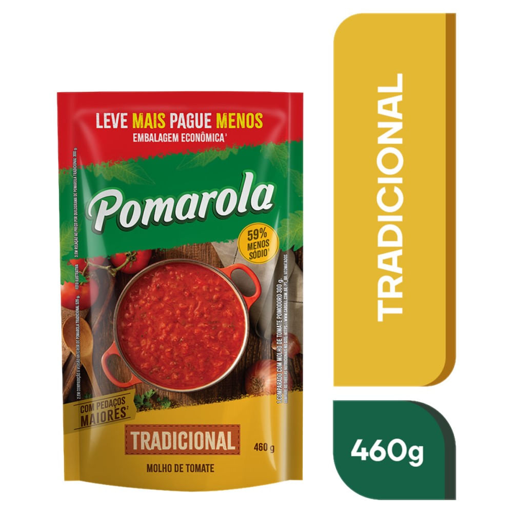 O molho de tomate Pomarola é constituído por polpa de tomate com cebola refogada, alho e óleo. Ao combiná-lo com outros ingredientes, você fará receitas saborosas e muito práticas.