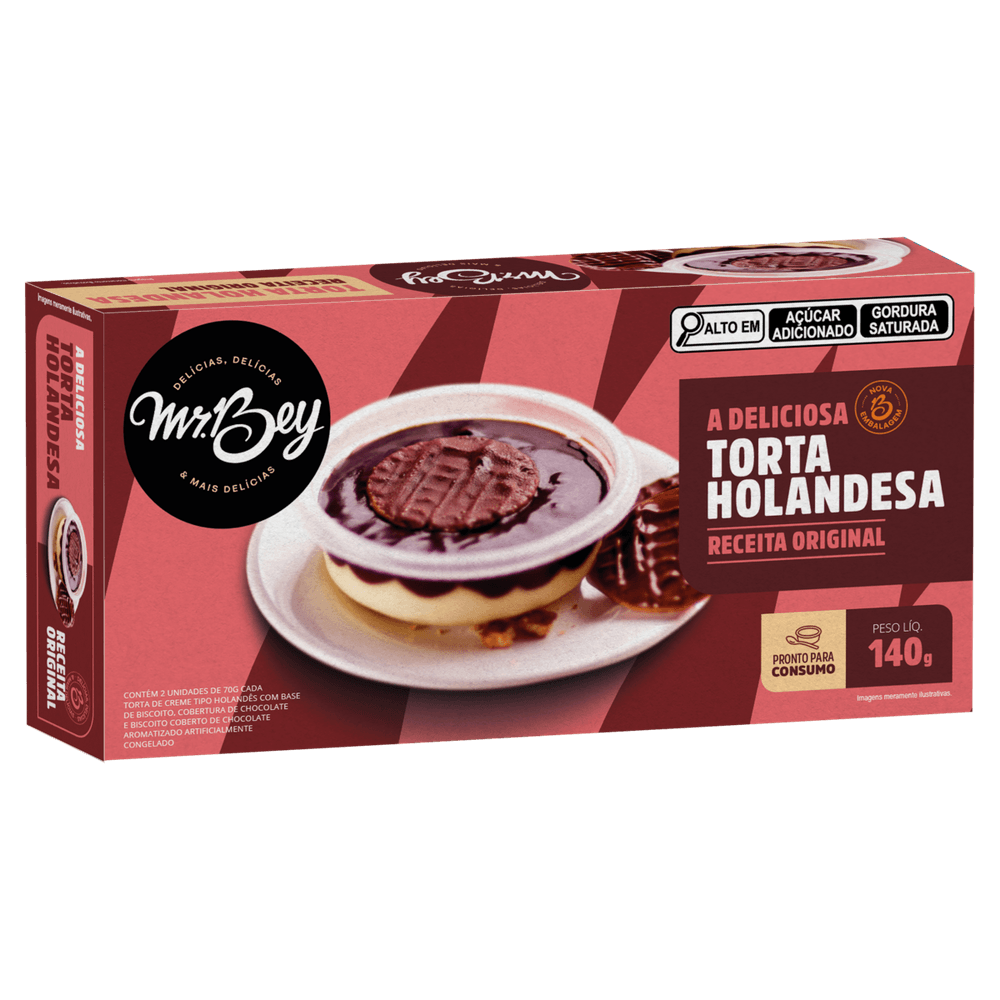 Torta Holandesa Mr. Bey 140g: sabor clássico e irresistível em uma porção prática. Camadas delicadas de biscoito, creme de manteiga e cobertura de chocolate proporcionam uma experiência doce e cremosa. Perfeita para acompanhar seu café ou para aquele momento de sobremesa especial. Produto congelado, fácil de armazenar e consumir quando desejar.